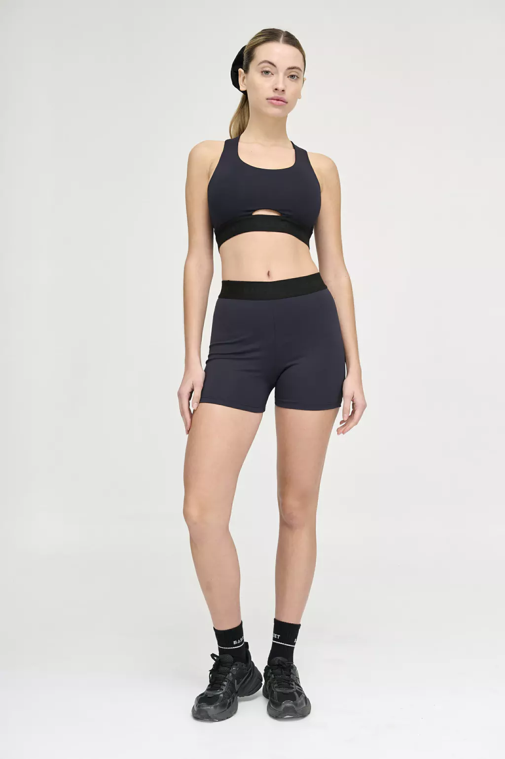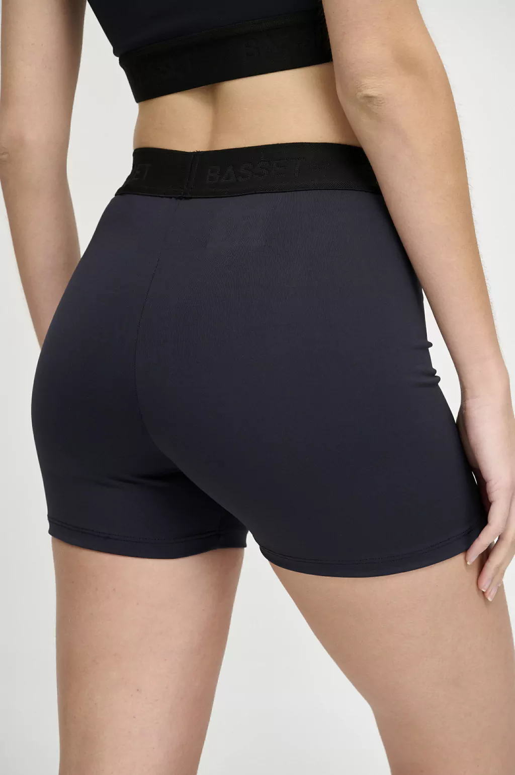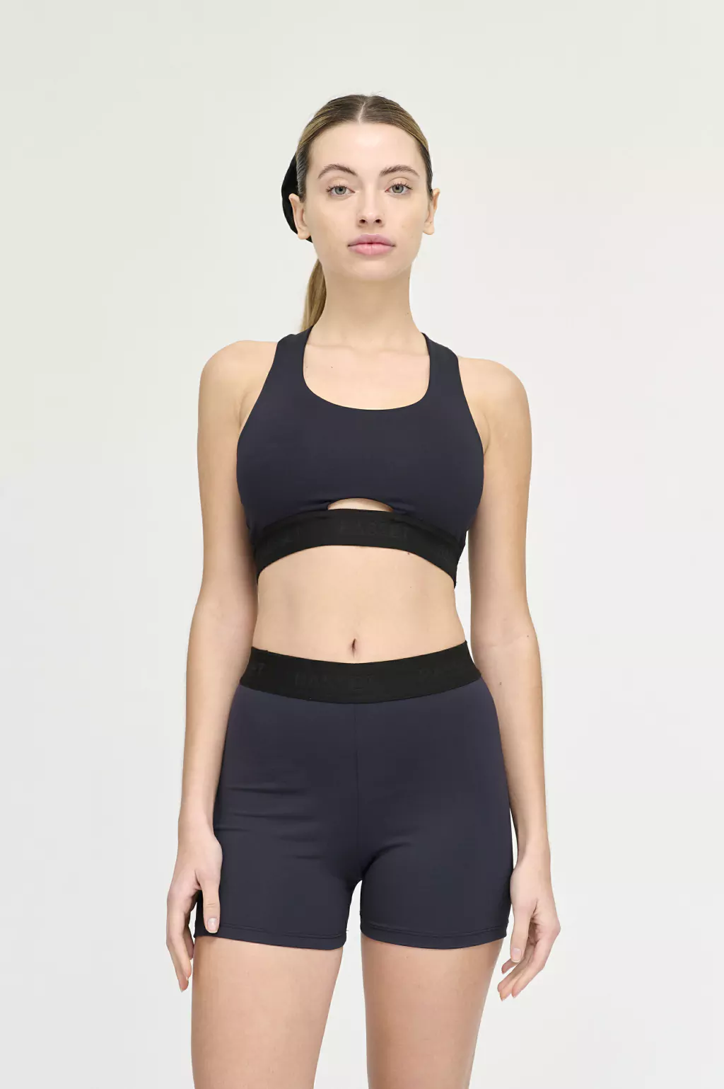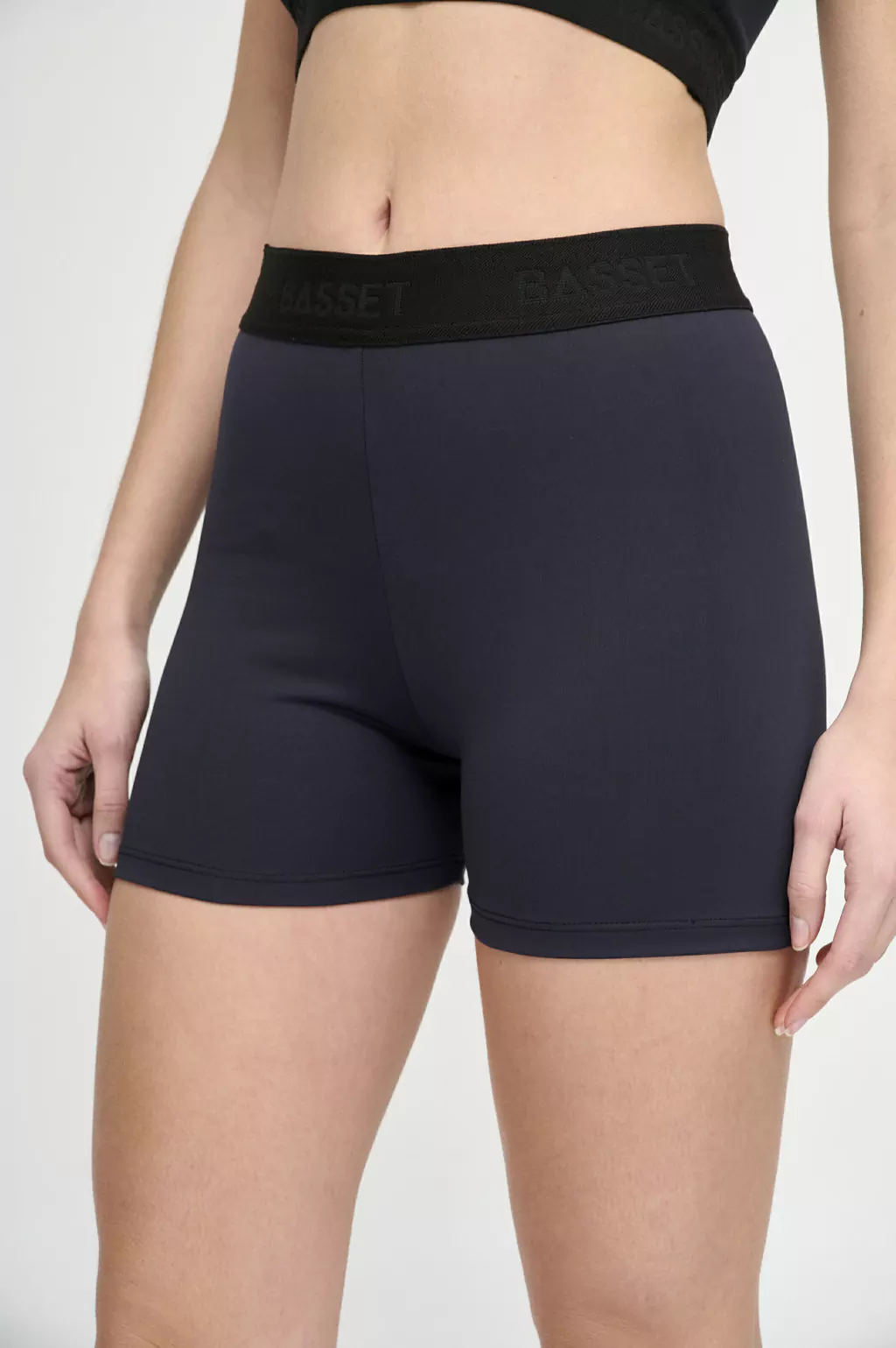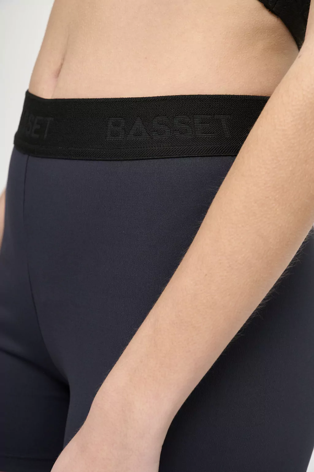 Cintura con elastico tejido de 4cm, con logo bst bajo relieve, negro sobre negro.