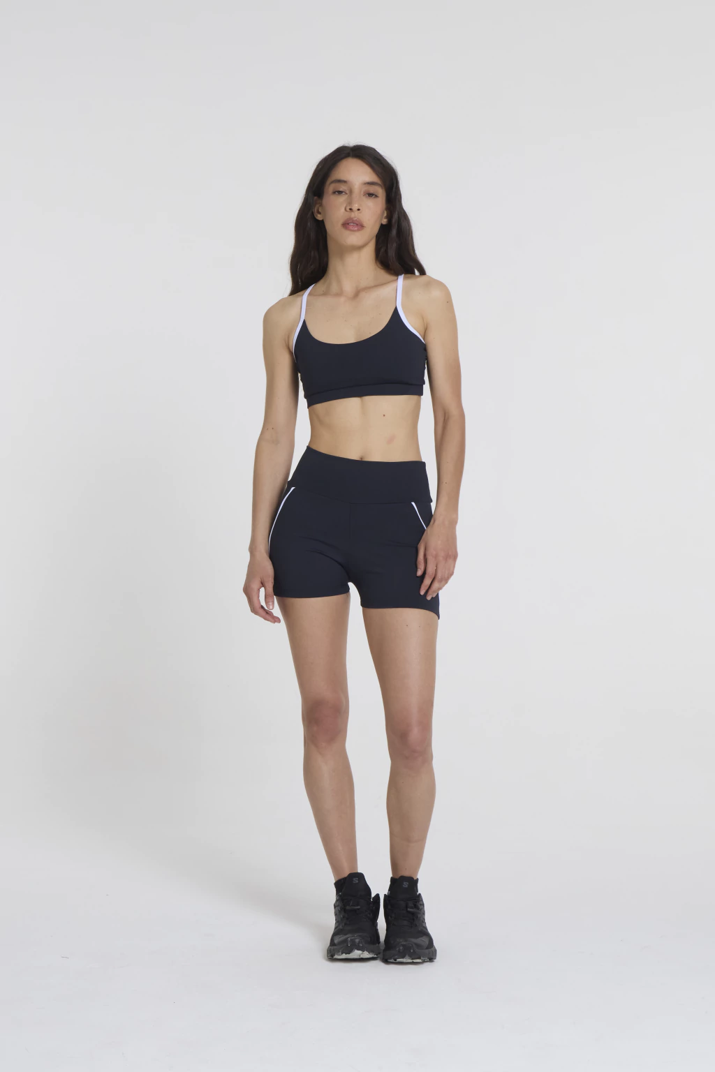 El nuevo top poetto, es un top con compresión media, corto y escote medio. Con combinación blanca y reguladores en las tiras.